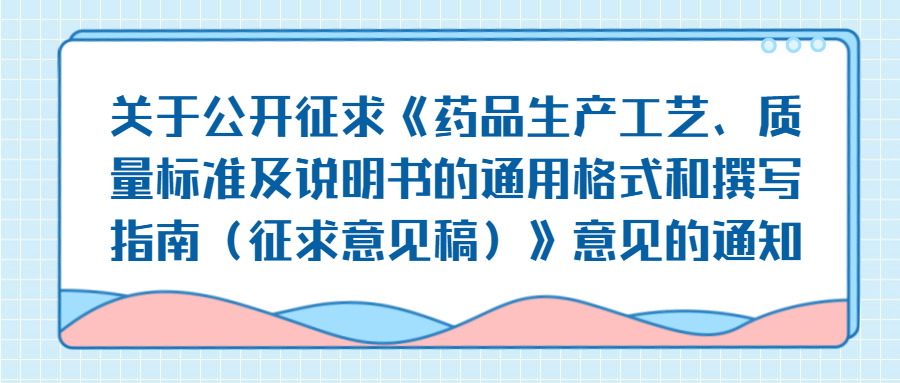 關(guān)于公開征求《藥品生產(chǎn)工藝、質(zhì)量標(biāo)準(zhǔn)及...